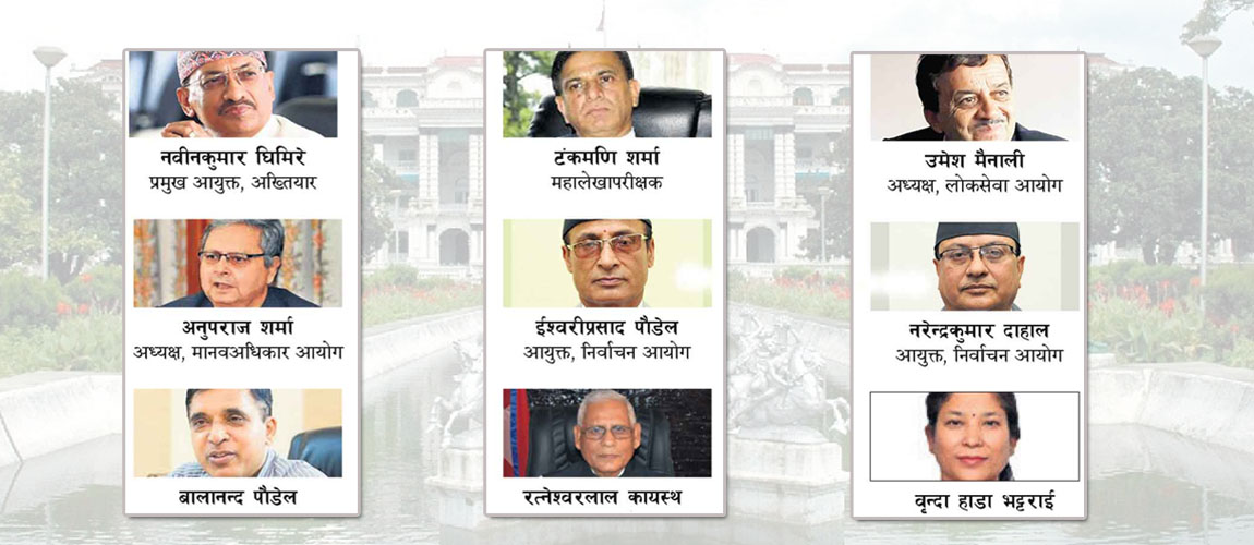 काठमाडौं । स्वच्छ छवि र उच्च नैतिकता भएका व्यक्तिहरू नै संवैधानिक निकायको पदाधिकारी बन्ने अपेक्षा संविधानले गरेको छ । त्यही संविधानअन्तर्गत नियुक्त भएका पदाधिकारीहरूले तलब र पेन्सनमा दोहोरो सुविधा लिइरहेकाे समाचार नयाँ पत्रिका दैनिकमा पुष्प ढुंगानाले लेखेका छन् ।