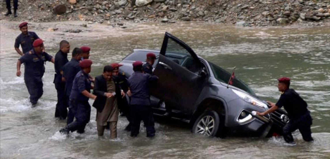 काठमाडौं । भौतिक पूर्वाधार तथा यातायातमन्त्री रघुवीर महासेठ चढेको गाडी स्याङ्जाको अर्जुनचौपारी गाउँपालिका–३ घट्टेस्थित दरौँ खोलामा पल्टेको छ । अर्जुनचौपारी–३ कै सहरे खोलामा पुल शिलान्यास गरेर सदरमुकाम फर्किने क्रममा मन्त्री सवार बा।२झ ४०२९ नम्बरको गाडी पल्टेको हो । गाडी खोलामा डुबेपछि मन्त्री महासेठलाई सुरक्षाकर्मीले तत्काल उद्धार गरेका थिए । गाडी क्रेन लगाएर झिकिएको थियो ।