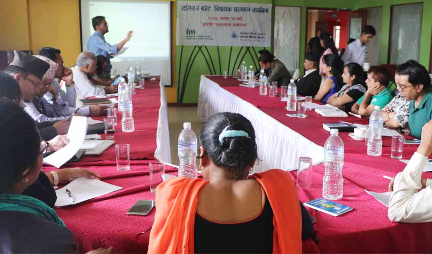 कार्यक्रममा, दलित, महिला, बालबालिका, जनजाति, अपांगलगायत सिमान्तकृत वर्गका लागि सोलोडोलो बजेट छुट्याउँदा पहुँच हुनेले मात्र बजेट पाउने गरेको प्रति दलित अधिकारकर्मीले सभासद्हरुको ध्यानार्कषण गराएका छन् । संविधानले दलितलाई अलग धारामा सम्बोधन गरेको हुनाले बजेट पनि सोहीअनुसार आउनु पर्नेमा उनीहरुको जोड छ ।