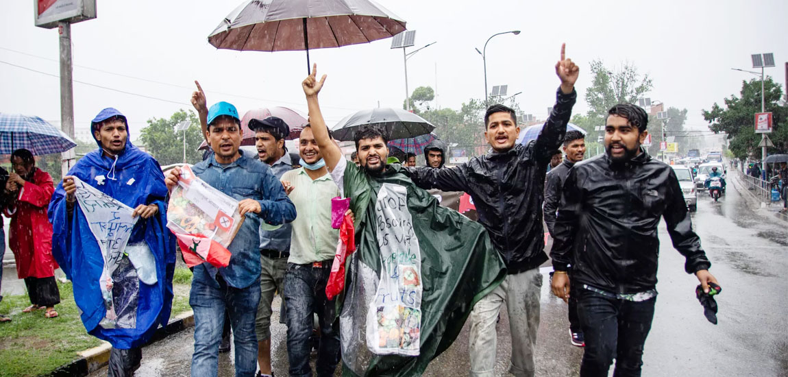 काठमाडौं । प्रमुख प्रतिपक्षी दल नेपाली कांग्रेसको भातृ संगठन नेपाल विद्यार्थी संघ(नेविसंघ)ले आज पनि प्रदर्शन गरेको । केहि समयदेखि सरकारको विषादी परीक्षण रोक्ने निर्णयविरुद्ध आन्दोलनमा उत्रिएको नेविसंघ आज पनि झरीमा रुझ्दै प्रदर्शनमा निक्लिएको हो ।