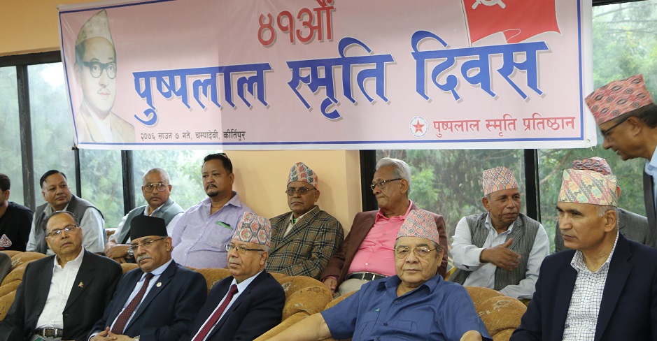 काठमाडौं । नेकपाका अध्यक्ष  तथा पूर्वप्रधानमन्त्री प्रचण्डले अाफूहरूबीचकाे एकता नाटकीय ढंगले नगरिएको भन्दै निक्कै सुझबुझपूर्ण निर्णयका आधारमा गरिएको प्रचण्डले बताएका छन् । ४१ औं पुष्पलाल स्मृति दिवसका अवसरमा पुष्पलाल प्रतिष्ठानले आज किर्तिपुरको चम्पादेवीमा आयोजना गरेको कार्यक्रमलाई सम्बोधन गर्दै अध्यक्ष प्रचण्डले भने, \'विभाजन भएको पार्टीलाई एकताबद्ध गर्ने र शसस्त्र किसान संर्घष मार्फत जनवादी क्रान्ति पूरा गर्ने पुष्पलालको योगदानको चर्चा गर्दै पुष्पलालको सोच अनुसारकै विभाजित कम्युनिष्ट पार्टीलाई एकताबद्ध बनाएर उत्तराधिकारी बन्ने काम गरेको हाैं ।\'