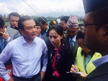 पसिना पुछ्दै चीनियाँ विदेशमन्त्री टुँडिखेलका भूकम्पपीडितलाई भेट्न पुगेपछि....
