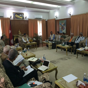 बालुवाटारमा शनिबार आयोजित चार दलको बैठकमा उपस्थित नेताहरु । तस्बिरः प्रधानमन्त्रीको नीजि सचिवालय \"Prime