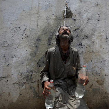 पाकिस्तानको कराँचीस्थित सार्वजनिक धारामा बोतल भरेपछि आफूलाई चिसो पार्दै एक वृद्ध । तस्बिरः रोयटर्स \"hot\"