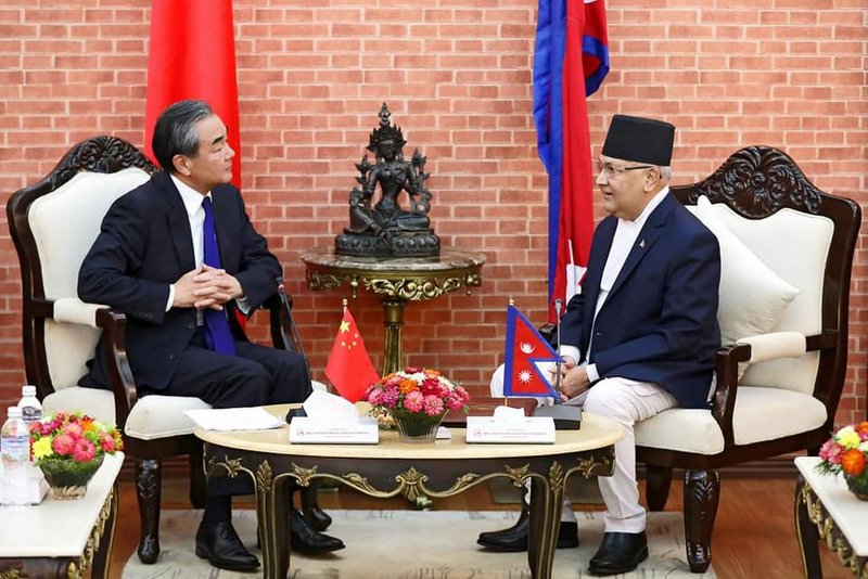 काठमाडौं । तीन दिने भ्रमणका लागि नेपाल आएका चिनियाँ विदेशमन्त्री वाङ यीले प्रधानमन्त्री केपी शर्मा ओलीलार्इ भेटेका छन् ।  विदेशमन्त्री वाङले प्रधानमन्त्री ओलीसँग प्रधानमन्त्री निवास बालुवाटारमा साेमबार साँझ भेटवार्ता गरेका हुन् ।