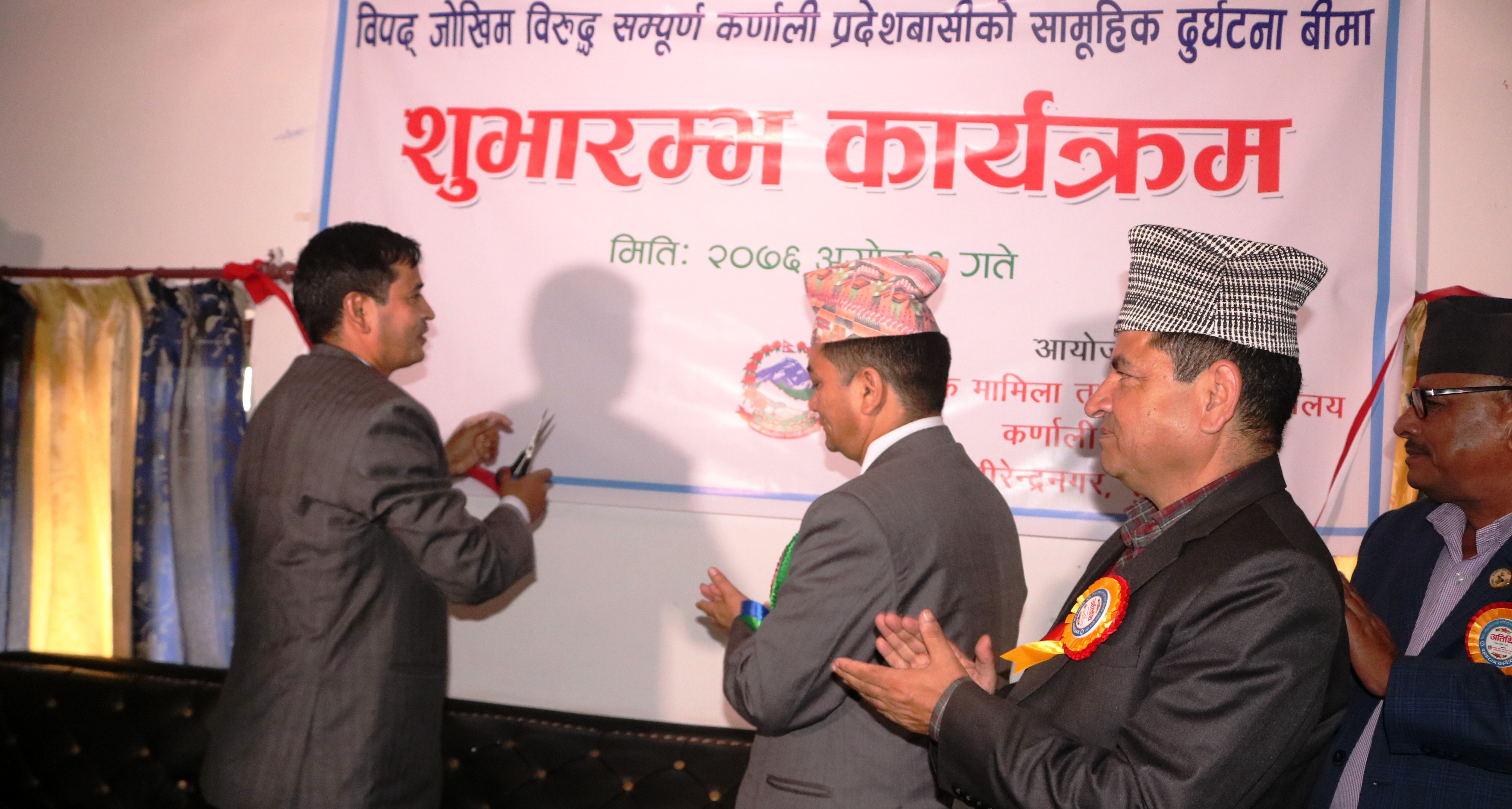 कर्णाली प्रदेश सरकारको नीति तथा कार्यक्रममा प्राथमिकता प्राप्त विपद दुर्घटना विमा कार्यक्रम आजै देखि लागु भएको छ । शुुभारम्भ कार्यक्रममै आन्तरिक मामिला तथा कानुन मन्त्रालयका सचिव वीरेन्द्रकुमार यादव र राष्ट्रिय विमा कम्पनी लिमिटेडका प्रमुख डिल्लीराज अर्यालले सहमति पत्रमा हस्ताक्षर गरेका थिए ।