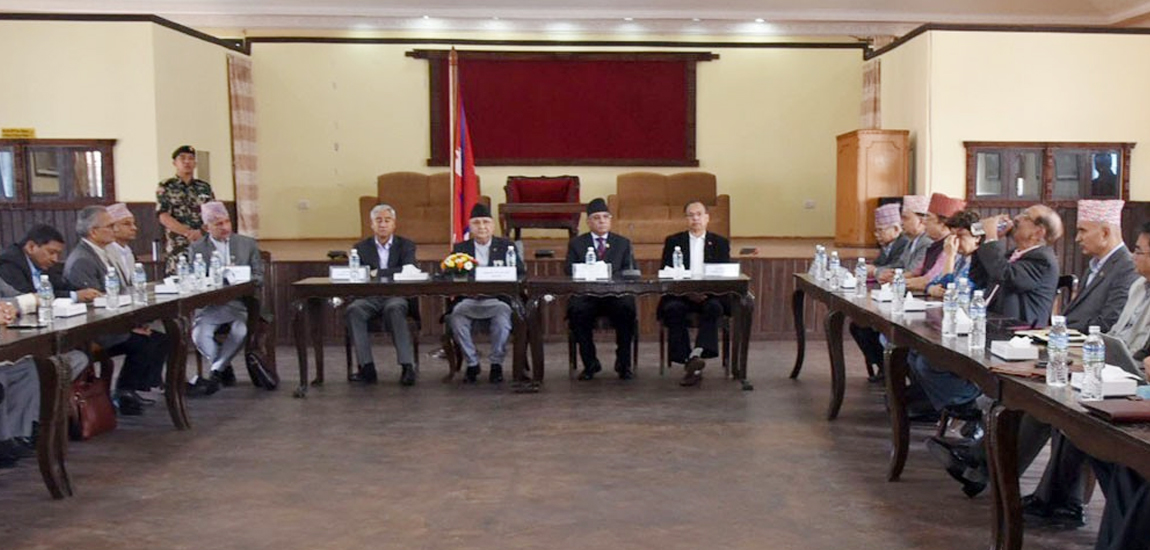 बैठकमा मन्त्रिपरिषदका पूर्व अध्यक्ष खिलाराज रेग्मी समेत सहभागी छन् । सत्तारूढ नेकपा महासचिव विष्णु पौडेलसहित सचिवालय सदस्यहरू समेत सहभागी छन्।