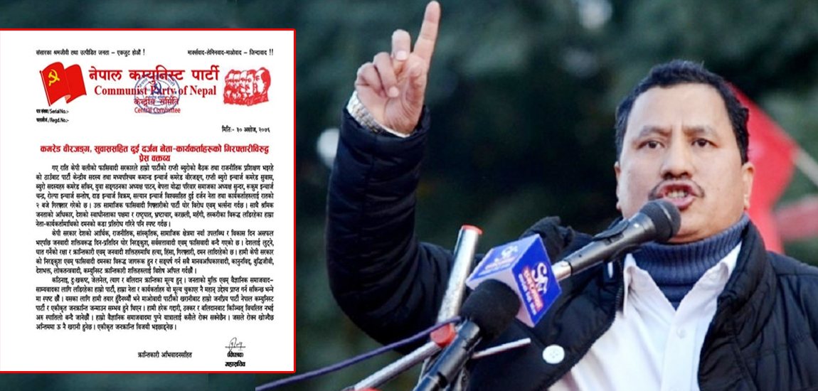 बिहिबार एक विज्ञप्ती सार्वजनिक गर्दै विप्लवले सरकारले नेकपाका राप्ती मध्यपश्चिम कमाण्ड इन्चार्ज, राप्ती ब्यूरो इन्चार्ज, रुकुम जिल्ला इन्चार्ज, रोल्पा ब्यूरो इन्चार्जलगायत दर्जन नेताहरु बैठक तथा प्रशिक्षण कार्यक्रम चलिरहेको स्थानबाट गिरफ्तार भएको जनाएका छन् । उनले सरकारी गिरफ्तारको भत्र्सना गर्दै सरकारी दमनको कडा प्रतिरोध गर्ने चेतावनी दिएका छन् ।