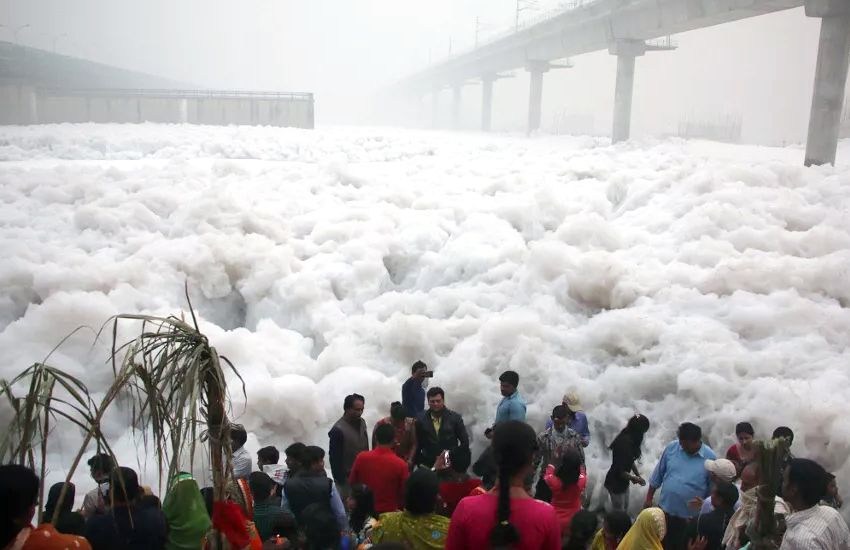 प्रदुषणको डरलाग्दो तस्बिर, यस्तो देखियो भारतको यमूना नदि (तस्बिरसहित)