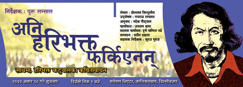 \"haribhakta\"       पोखरा, असार १८ गते । कवि हरिभक्त कटुवालको ८० औँ जन्म जयन्तीका अवसरमा शुव्रबार ‘हरिभक्त फर्किएनन्’ नामक वृत्तचित्र प्रदर्शन गरिएको छ ।काठमाडौँको सर्वनाम थिएटरमा आयोजित विशेष कार्यव्रमका बिच प्रदर्शित वृत्तचित्रमा कवि हरिभक्त कटुवालको जीवनका विभिन्न घटनाहरुलाई चित्रण गरिएको छ । कवि प्रोल्लास सिन्धुलीयको लेखन, नाटककार तथा निर्देशक पुरु लम्सालको निर्देशन र गजलकार सुरज गुरुङको सहनिर्देशन रहेको वृत्तचित्रको छायाङ्कन जयराम थापाले गर्नुभएको हो । कवि तथा सञ्चारकर्मी नवराज लम्सालको उद्घोषण रहेको सो वृत्तचित्रको सहछायाङ्कन दुर्गा चाम्लिङ राईले गर्नुभएको छ भने वृत्तचित्रको सम्पादन प्रदिप दाहालले गर्नुभएको छ । ‘यो जिन्दगी खै के जिन्दगी ?’लगायत चर्चित कृति हरिभक्त प्रवासी कविका रुपमा परिचित हुनुहुन्छ । सर्वनाम थिएटरमा शुव्रबार खचाखच दर्शकमाझ प्रस्तुत गरिएको वृत्तचित्रले निर्माण समूहलाई निकै उत्साह थपेको भन्दै पोखरा र लमजुङमा सो वृत्तचित्र प्रदर्शन गर्ने तय भएको सहनिर्देशक सुरज गुरुङले जानकारी दिनुभयो ।
