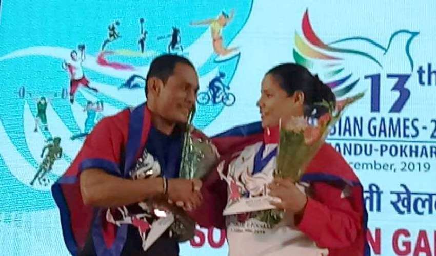 कास्की । तेह्रौँ दक्षिण एशियाली खेलकूद प्रतियोगिता (साग) अन्तर्गत पोखरामा सञ्चालित भारोत्तोलन प्रतियोगितामा नेपालका कमलबहादुर अधिकारी दम्पतीले कास्य पदक प्राप्त गरेका छन् । पोखरा महानगरपालिका–१२ माटेपानीमा आयोजित प्रतियोगिताको शुक्रबार पुरुष ६७ केजी तौल र उनकी धर्मपत्नी राज्यलक्ष्मीले ७१ केजी तौल समूहमा कास्य पदक जित्न सफल भएको हो ।