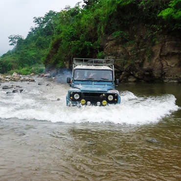 इलाम नगरपालिका र सोयाङ गाविस जोड्ने बिसहातेस्थित माइखोलामा पुल नहुँदा खोलाबाट गाडी तार्दै । तस्बिर : गोविन्द लामिछाने, रासस \"gadi\"