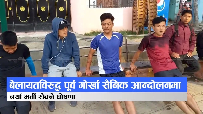 काठमाडौँ । पूर्वगोर्खा सैनिकहरूको संयुक्त सत्याग्रह संघर्ष समितिले बेलायती फौजका नेपाली जवानको भर्तीमा रोक लगाउने घोषणा गरेको छ । समान कामका लागि समान ज्याला मागसहित आन्दोलन गर्दै आएको समितिले माग पूरा नभएसम्म बेलायती फौजमा भर्तीमा रोक लगाउने घोषणा गरेको हो ।‘माग पूरा नभएपछि भर्ती अभियानलाई रोक्ने निर्णयमा पुगेका संघर्ष समितिका प्रमुख संयोजक कृष्णबहादुर राईले जानकारी दिए ।