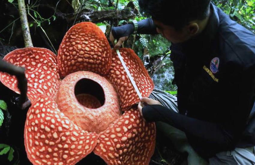 काठमाडौं । इण्डोनेशियाको पश्चिम मध्य सुमात्राको जंगलमा विश्वकै सबैभन्दा ठूलो फूल भेटिएको छ । वन्य जीव अधिकारले सञ्चारमाध्यमलाई जनाएअनुसार फूलको नाम रेफलिसिया रहेको छ । ४ वर्ग फिटमा फैलिएको फूल अहिलेसम्मको रेकर्डअनुसार सबैभन्दा ठूलो हो । यसअघि २०१७ सालमा ३ फिट चौडा र १२ केजी बजनको फूल भेटिएको थियो ।