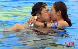 \"FOREIGN201507061557000378830389049\"चीनको साङ्घाइमा पानी भित्रै चुम्बन प्रतियोगिता सम्पन्न भएको छ । साङ्घाइस्थित माया विच वाटर पार्कमा जुलाई ५ मा सम्पन्न प्रतियोगितमा २० प्रेमील जोडीहरुले सहभागिता जनाएका थिए । प्रतिष्पर्धी मध्ये सु जुङ र झाङ वेनक्वीङ विजेता बने । उनीहरुको जोडीले पानीभित्र लगातार एक मिनेट २० सेकेन्डसम्म लगातार चुम्बन गरेर अन्य प्रतिस्पर्धीलाई पछि पार्दै विजेताको उपाधी हात पारेका थिए । \"maya \"FOREIGN201507061557000389066338518\"   \"FOREIGN201507061557000375068454037\" \"FOREIGN201507061557000373738285134\" \"FOREIGN201507061557000363330456136\" \"FOREIGN201507061557000367111782142\" \"FOREIGN201507061557000377341705620\"