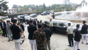 \"rastrapati\"२३ असार, काठमाडौं । मंगलबार बिहान ७ बज्दा–नबज्दै सडकका दायाँबायाँ ट्राफिक प्रहरीले सर्वसाधारण सवारीचालकलाई रोके। किन ? प्रहरीले जवाफ दिए, ‘भिभिआइपी सवारी’ राष्ट्रपति वा प्रधानमन्त्री कोही औपचारिक कार्यक्रमका लागि कतै जाँदैछन् भन्ने सोचेर सर्वसाधारण रोकिए। केहीछिनमै शीतलनिवासबाट राष्ट्रपति औपचारिक कार्यक्रममा सहभागी हुँदा चढ्ने बा९च ७०५७ नम्बरको सवारी अघिपछि सुरक्षाकर्मीसहित निस्कियो। पुतलीसडक, सिंहदरबार हुँदै सवारी कारगेड बानेश्वरतर्फ अघि बढ्यो । बबरमहलबाट सवारीमा घोडचडी बग्गी पनि थपियो। अघि र पछि बग्गी, बीचमा सुरक्षाकर्मीको लावालस्कर नै बानेश्वरतर्फ अघि बढ्यो। सर्वसाधारण त्यतिबेला अचम्मित भए, सवारीमा राष्ट्रपति वा प्रधानमन्त्री देखिएनन्। बग्गीसहितको लावालस्कर ठिक सात बजे संविधानसभा भवन प्रवेश गर्योि। झकिझकाउ पारिएको संविधानसभा भवनको मूल गेटअघि पानीका फोहोराले सवारीको शोभा बढाइरहेका थिए। संविधानसभाको मूलढोकामा कानुनमन्त्री नरहरि आचार्य, सभामुख सुवास नेम्वाङ, उपसभामुख ओनसरी घर्ती, संसद सचिवालयका महासचिव मनोहरप्रसाद भट्टराई, सचिव मुकुन्द शर्मा, संसद सचिवालयका सह–सचिवहरु स्वागतका लागि आतुर थिए। अर्कोपट्टी ब्यान्डसहितका सुरक्षाकर्मी सलामीका लागि तयार थिए। त्यत्तिकैमा राष्ट्रपति चढ्ने गाडीबाट एक सुरक्षाकर्मी राष्ट्रपतिकै शैलीमा बिस्तारै निस्किए र संविधानसभातर्फ अघि बढे। त्यसपछि मात्रै थाहा भयो, ‘बुधबार संसदमा सरकारका तर्फबाट पेस हुने नीति तथा कार्यक्रममा राष्ट्रपति कसरी आउँछन् भनेर गरिएको रिहर्सल ।’ राष्ट्रपतिको सवारीसाधनमा सवार ती सुरक्षाकर्मीलाई कानुनमन्त्री, सभामुख, उपसभामुख, महासचिव लगायतले स्वागत गरे। अनि उनलाई सलामी दिइने स्थानमा उभ्याइयो। अर्कोतर्फ रहेका सुरक्षाकर्मीले उनलाई सलामी पनि अर्पण गरे। त्यसपछि संविधानसभाको बैठक कक्षमा प्रवेश गराइयो। संविधानसभा बैठक कक्षमा कानुनमन्त्री, सभामुख अघिअघि र ती सुरक्षाकर्मी पछिपछि प्रवेश गरे। राष्ट्रपति प्रवेश गर्ने ढोका हुँदै उनलाई सभामुख च्याम्बरको दायाँसम्म पुर्यानइयो। त्यसपछि राष्ट्रपति बस्ने, नीति तथा कार्यक्रम वाचन गर्नेलगायत विषयमा जानकारी गराएर उनलाई त्यसैगरी मूलढोका बाहिरसम्म विशिष्ट व्यक्तिहरु नै छाड्न निष्किए। बाहिरिँदै गर्दा उनलाई राष्ट्रिय धून बजाएर बिदाई गरियो। सरकारका तर्फबाट राष्ट्रपति रामवरण यादवले बुधबार दिउँसो ३ बजे नीति तथा कार्यक्रम प्रस्तुत गर्दैछन्। त्यसको पूर्वसन्ध्यामा यसरी रिहर्सल गरिएको थियो। ‘प्रत्येक वर्ष यसैगरी रिहर्सल गरिन्छ’ संसद सचिवालयका प्रवक्ता डा। भरतराज गौतमले भने, ‘आज पनि त्यसैको रिहर्