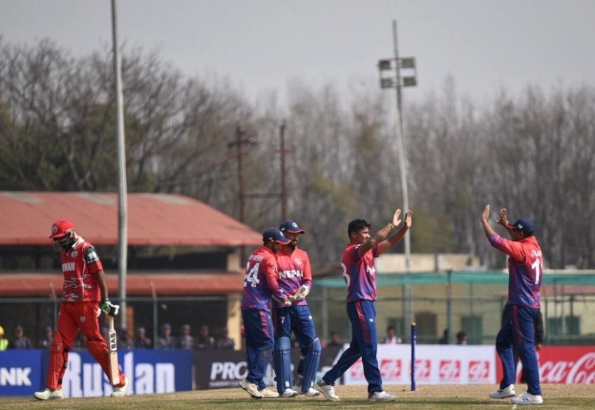कप्तान ज्ञानेन्द्र मल्लले टस जितेपछि ब्याटिङमा आएको ओमानबाट मोहम्मद नदिमले सर्वाधिक ६९ रन बनाए । ९६ बल खेलेका उनले ५ चौका र २ छक्का प्रहार गरे । अर्का अविजित ब्याट्सम्यान बिलाल खानले ८ रन बनाए ।