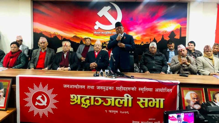 काठमाडौं । नेपाल कम्युनिष्ट पार्टी नेकपामा अध्यक्ष पुष्पकमल दाहाल \'प्रचण्ड\'ले सही विचार र सही नेतृत्वले गर्दा नै राजतन्त्रको अन्त्य सम्भव भएको बताएका छन् । जनयुद्ध दिवसका अवसरमा नेकपा मुख्यालयमा बिहीबार बिहान आयोजित श्रद्धाञ्जली सभालाई सम्बोधन गर्दै प्रचण्डले यस्तो कुरा बर्ताका हुन् ।