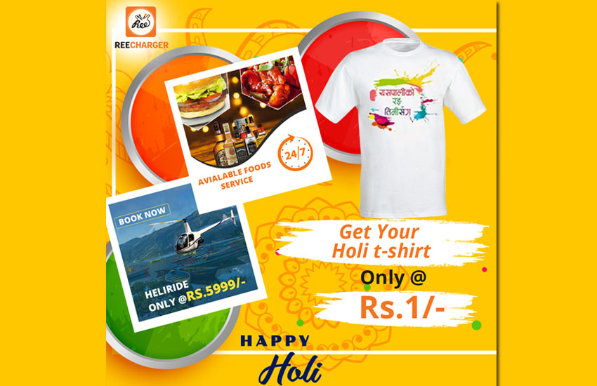 काठमाडौं । मोबाइल एप रिचार्जरले होलीको अवसर पारेर रिचार्जरले १ रुपैंयामा होलीको टीसर्ट उपलब्ध गराउने भएको छ । रङहरुको पर्व होलीलाई हर्षोउल्सास बनाउनुका साथै आफ्नो ब्राण्ड प्रवद्र्धनका लागि होलीको थिमयुक्त टीसर्ट १ रुपैंयाँमा उपलब्ध गराउने अफर ल्याएको रिचार्जरले जनाएको छ ।