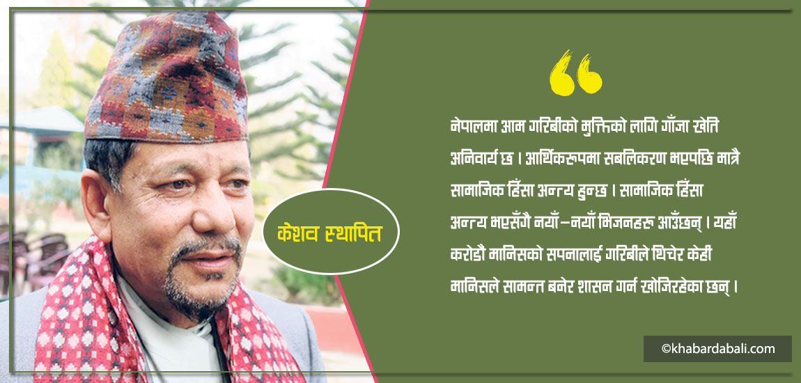 त्यसकारण नेपालमा गाँजा खेति भनेको महिला मुक्ति, दलित मुक्ति, कर्णालीको जनताको मुक्ति, मधशेको मुक्तिको कुरा हो । पहाडमा बस्ने गरिब ब्राम्हणको पनि कुरा हो । नेपालमा आम गरिबीको मुक्तिको लागि गाँजा खेति अनिवार्य छ । आर्थिकरुपमा सबलीकरण भएपछि सामाजिक हिंसा अन्त्य हुन्छ । सामाजिक हिंसा अन्त्य भएपछि नयाँ–नयाँ भिजनहरु आउने भए । यहाँ करोडौं मानिसको सपनालाई गरिबीले थिचेर केही मानिसले सामन्त शासन गर्न खोजिरहेका छन् ।