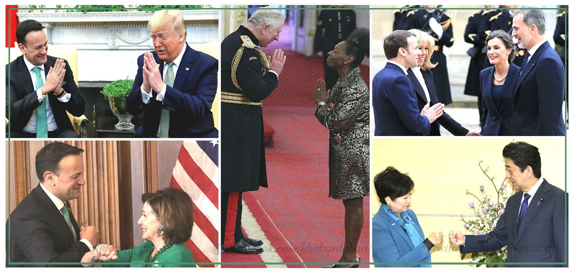 अंगालो हाल्न र हात मिलाउन छोडेर नमस्ते र कुम मिलाउनतर्फ नेताहरु, फोटोमा हेर्नुहोस् कसले के गरे ?