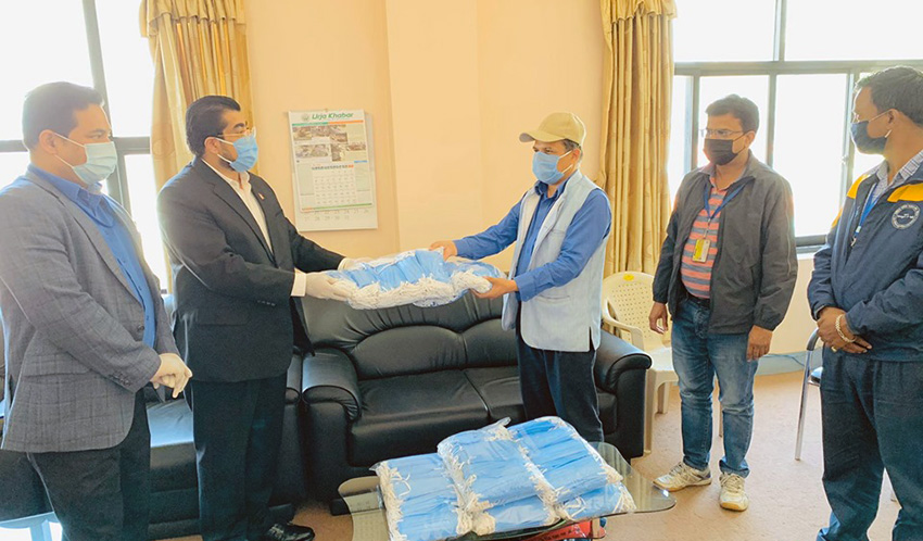 काठमाडाैं । नेपाल परिवार दलले विश्वभर फैलिएको कोरोना भाइसरले सत्य तथ्य खबर सम्प्रेषणका लागी फिल्डमा खटिने पत्रकारहरुका लागी आवश्यक पर्ने सुरक्षा सामग्री पत्रकारहरुको छाता संगठन नेपाल पत्रकार महासंघलाई प्रदान गरेको छ । आईतबार पत्रकार महासंघको कार्यलयमा नेपाल परिवार दलका अध्यक्ष एवम् पूर्वमन्त्री एकनाथ ढकालले सुरक्षा सामग्री महासंघका अध्यक्ष गोबिन्द आचार्यलाई हस्तान्तरण गरेका छन् ।