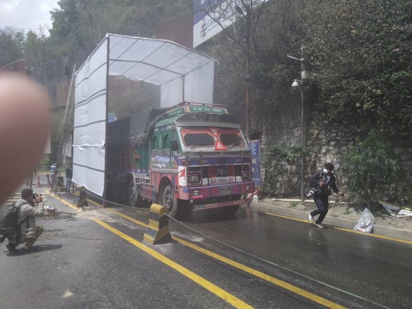 लकडाउनको समयमा खाद्य पदार्थ तथा अन्य अत्यावश्यक सामग्री बोकेका सवारी साधनलाई निःसङ्क्रमण गराएर प्रवेश गराउन टनेल निर्माण गरिएको सो यातायातका अध्यक्ष भेषबहादुर थापाले जानकारी दिए ।