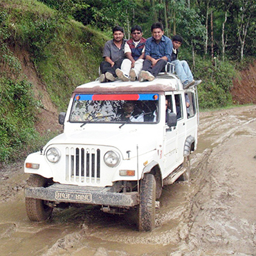 इलामको ग्रामीण भेगका हिलाम्मे सडकमा गाडी चलाउँदै । तस्बिरः गोविन्द लामिछाने/इलाम–रासस \"kachhi_bato_khabardabali\"
