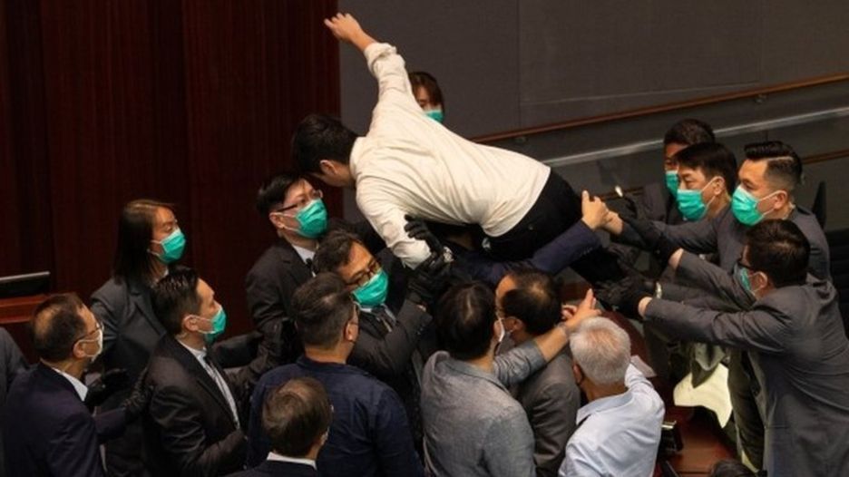 एजेन्सी । चिनियाँ राष्ट्रगानसम्बन्धी एउटा प्रस्तावित कानुनबारे विवाद उत्पन्न भएपछि हङ्‌कङको संसद्‌बाट केही प्रजातन्त्रवादी सांसदहरूलाई घिसारेर बाहिर निकालिएको छ।