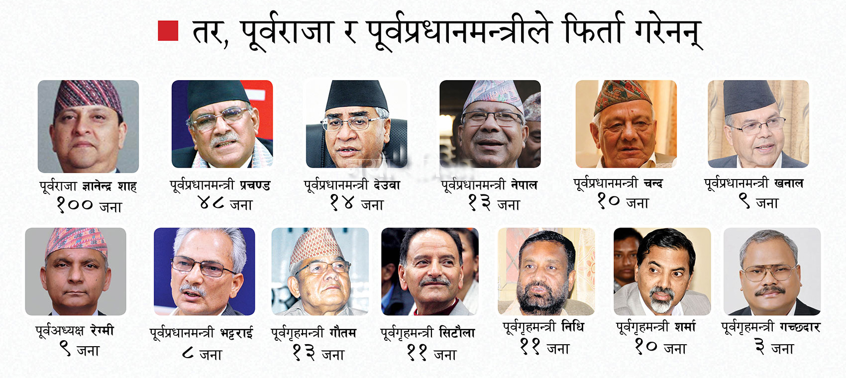 तर, पूर्वराजा र पूर्व प्रधानमन्त्रीले सुरक्षाकर्मी फिर्ता गरेनन्
