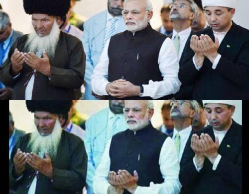 \"modi-dua\"२९ असार, काठमाडौं । भारतीय प्रधानमन्त्री नरेन्द्र मोदीको एउटा नक्कली फोटोले आजकाल फेसबुक र ह्वाट्सएपसमेत थुप्रै सोसल साइटमा भाइरल भएको छ । मोदी तुर्कमेनिस्तानको यात्राको क्रममा प्रथम राष्ट्रपति सपरमुरात नियाजोवको समाधिमा गएका थिए जहाँ उनले केहीबेर प्राथना पनि गरेका थिए । मोदीको उक्त यात्राको तस्बिरलाई एडिट गरेर त्यसलाई सोसल मिडिया सेयर गरिएको छ । यो फोटोको निकै आलोचना भएको छ । तस्बिरमा प्रार्थना गरिरहेको मोदीको हातको स्थितीलाई एडिट गरेर परिवर्तन गरिएको छ ।