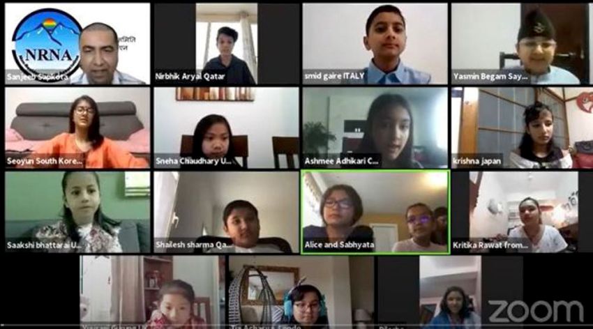 काठमाडौं । विश्वभर फैलिएको कोभिड १९ का कारण लकडाउनमा घरमै बस्न बाध्य नेपाली बालबालिकाको आफ्नो अनुभव साटासाट गरेका छन् । गैरआवासीय नेपाली सङ्घअन्तर्गतको विश्व स्वास्थ्य समितिको संयोजनमा जुममार्फत भएको भेलामा २० देशका १२ वर्षमुनिका नेपाली बालबालिका सहभागी भए । सहभागीको कोरोना कहरमा आफूले भोगेको अनुभव मन खोलेर सुनाएका थिए । सभ्यता शर्मा (१०) र एलिस कार्की (१२) ले सञ्चालन गरेको कार्यक्रममा नेपाललगायत अष्ट्रिया, नाइजेरिया, क्यानडा, साउदी अरब, अमेरिका, जापान, बहराइन, इटाली, चीन, कतार, युएई, दक्षिण कोरिया, बेलायतलगायत देशमा रहेका दोस्रो पुस्ताका नेपाली बालबालिका सहभागी थिए ।