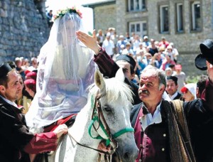 \"Dulahi\"३० असार, काठमाडौं । विश्वका अधिकांश देशमा दुलाहा घोडा वा गाडीमा बसेर दुलही लिन जान्छन् । आजको नयाँ पत्रिका दैनिकमा खबर छ –तर, मेसेडोनियाको राजधानी स्कोपजेमा एउटा परम्परागत विवाहमा दुलाहा होइन, दुलही घोडामाथि बसेर दुलाहा लिन जान्छिन् । केही खास जोडीका लागि सेन्ट पिटर्स डेका दिन परम्परागत विवाह समारोह हुन्छ, जुन तीन दिनसम्म चल्छ । विवाह समारोहमा दुलही दुलाहाको घरमा पुगेपछि दुलाहाले परम्परागत नृत्य गर्दै दुलही र जन्तीको स्वागत गर्छ । र, आफ्नो टोपी हल्लाएर उनीहरूलाई घरभित्र आउन अनुरोध गर्छ । त्यसक्रममा दुलहीले इन्गेजमेन्टको औँठीबाट दुलाहाको अनुहार हेर्छे । त्यसैगरी बिहेको एक दिनअघि रातिको समयमा बेहुलाका आफन्तहरू टर्च बोकेर घरको वरिपरि चक्कर लगाउँछन् ।