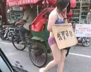 \"china-woman-nude-in-street-by-husband\"नेपाल जस्तो देशमा शरिर बेच्नुलाई बर्जित मात्रै होइन, अनैतिक समेत मानिन्छ । कोही बाध्यताले समेत यो पेसा अंगालेका हुन्छन् । तर कतै भने आफ्नै शरिर बेच्न पाउनु पर्यो भन्दै सडकमै मान्छे भौतारिन थालेका छन् । घटना चीनको हो । चीनको शियाङ्ग्सी प्रान्तिस्थित सडकमा एक महिला एकाएक अर्ध नग्न अवस्थामा अनौठो प्लेकार्ड बोकेर घुम्न थालिन् । उनको प्लेकार्ड थियो । त्यहाँ लेखिएको थियो ‘म मेरो शरीर बेच्न चाहन्छु ।’   उनले आफ्नो शरीर कुनै पसलमा बेच्नका लागि यसो भनेकी होइनन् । उनको पति र पत्निबीच रहस्यमयि घटना भएको थियो । एक दिन उनका पतिले उनलाई अर्कै पुरुषसँग सम्बन्ध बनाएको फेला पारेपछि पत्निलाई सजाय दिन यस्तो काइदा निकालेको डेलि मेलले जनाएको छ  ।\"china-woman-nude-in-street-by-husband-1\" सार्वजनिक गरिएको तस्विरमा ती महिलाले केवल भित्री बस्त्र मात्र लगाएी छिन् । ती महिला ३३ वर्षकी वाङ नी हुन् । उनलाई पतिले पिटेनन् मात्र नाङ्गो बनाएर शरीर बेच्न चाहन्छु भन्ने प्ले कार्ड बोकाएर सडकमा हिड्न लगाएका थिए ।