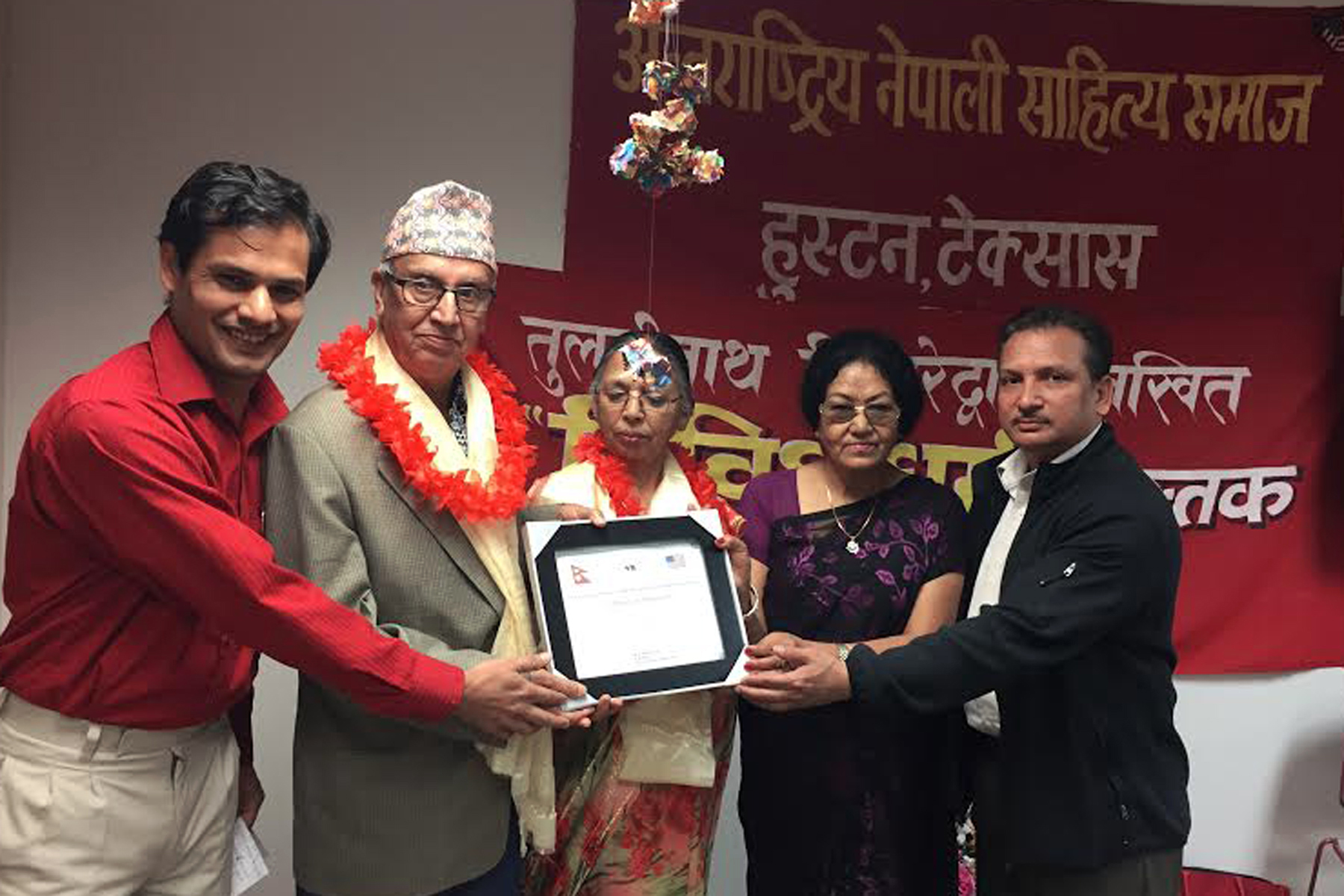अन्तर्राष्ट्र्रिय नेपाली साहित्य समाज (अनेसास) ह्युस्टन च्याप्टरद्वारा आयोजित समारोहमा सो संस्थाका संस्थापक अध्यक्ष गंगा लिगलले पुस्तकको विमोचन गरेका थिय ।