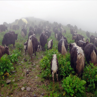 म्याग्दीको खोप्रा लेकमा सामुदायिक विद्यालय सञ्चालनका लागि आयस्रोत जुटाउन गरिएको चौँरीपालन । तस्बिरसः सन्तोष गौतम/ रासस \"yak\"