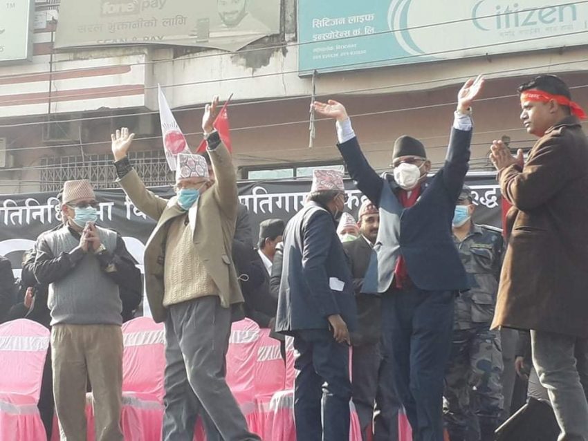 नेपालले ओलीले गणतन्त्र, संघीयता र समानुपातिक प्रतिनिधित्वको संबैधानिक उपलब्धि भत्काउन खोजेर तमासा देखाएको बताएका हुन्। ‘उनी तमासा मात्रै देखाइरहेका छन्,’ नेपालले भने, ‘यो तमासा धेरै चल्ने छैन। अब ओली र उनको गुटमा मातम छाएको छ । उनको हाल ओरालो लागेको अवस्था भएको छ।’