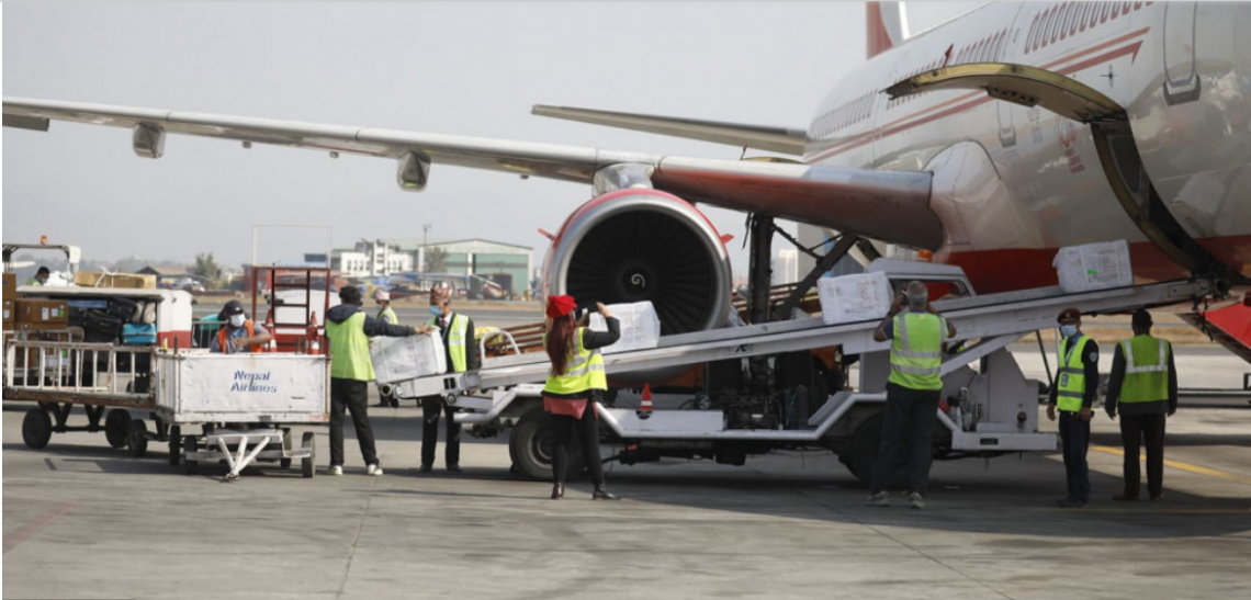 काठमाडौँ । नेपाल सरकारले भारतबाट खरिद गरेको कोभिड–१९ विरुद्धको १० लाख डोज ‘कोभिशिल्ड’ खोप आइपुगेको छ । आइतबार एयर इन्डिया दिल्लीको विमानबाट सेरम इन्स्टिच्युट अफ इन्डियाबाट उत्पादित १० लाख डोज खोप काठमाडौंको त्रिभुवन अन्तर्राष्ट्रिय विमानस्थलमा आइपुगेको हो ।