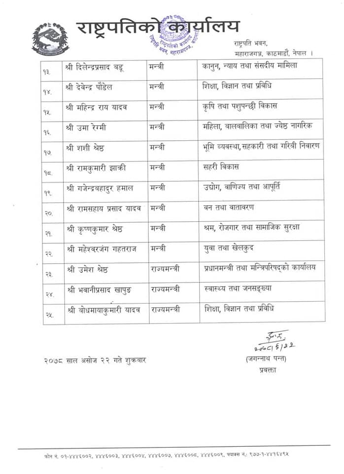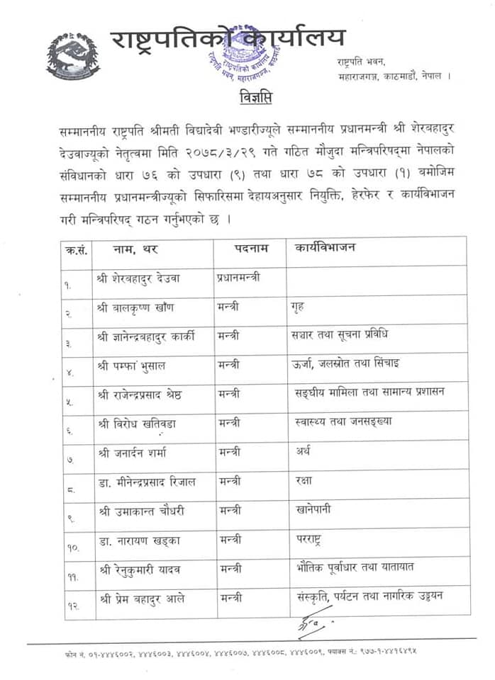 काठमाडौँ । नेपाली कांग्रेसले सांसद नभएकालाई पनि मन्त्री बनाएको छ । प्रधानमन्त्री शेरबहादुर देउवाले प्रधानन्यायाधीश चोलेन्द्र शमशेर जबराका आफन्त गजेन्द्र हमाललाई उद्योग, वाणिज्य तथा आपूर्तिमन्त्री बनाएका हुन् ।
