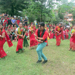 बागलुङ सदरमुकामस्थित एश्वर्य पार्कमा गायक पूर्ण परियार र सीता परियारले निकालेको तीज गीतको दृश्य छायाङ्कनका क्रममा नाच्दै कलाकारहरु । तस्बिरः रामबहादुर थापा/रासस \"teej\"
