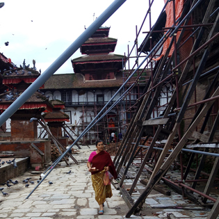 काठमाडौंको वसन्तपुर नजिकै रहेको शिव मन्दिरमा साउने सोमबार पूजा गरेर फर्किंदै एक महिला । तस्बिरः सुनिल शर्मा / सिन्ह्वा \"sombar\"