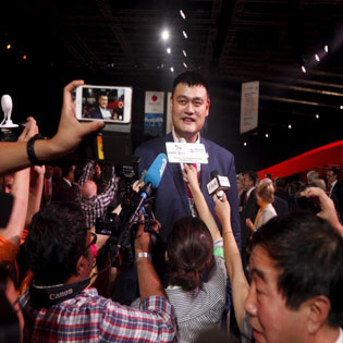 बेइजिङलाई २०२२ विन्टर ओलम्पिक गेममा विजेता घोषित गरेपछि पत्रकार सँग बोल्दै पूर्व बास्केटबल खेलाडी याओ मिङ । तस्बिरः रोयटर्स \"Yao