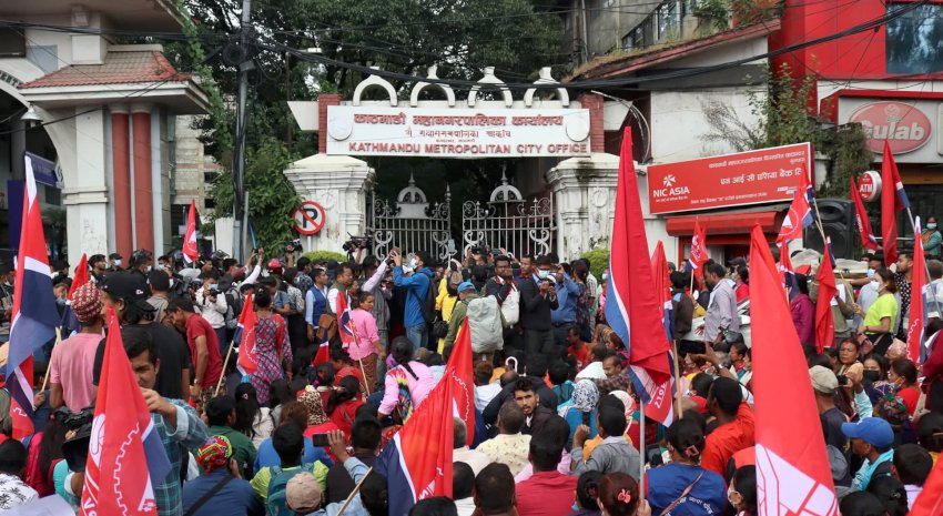 जिफन्ट निकट नेपाल स्वरोजगार श्रमिक व्यापार संघले फुटपाथ व्यवसायी र साना व्यवसायीलाई विकल्प नदिई हटाएको भन्दै महानगरपालिकाको कार्यालय घेराउ गर्दै आन्दोलनमा उत्रिएका हुन् ।