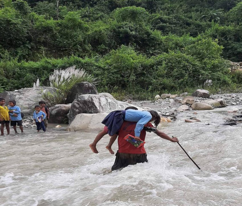 खोलामा पुल नहुँदा विद्यार्थीलाई यसरी खोला तार्नुपर्ने बाध्यता