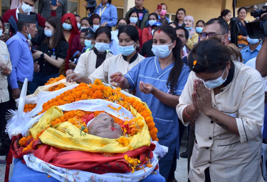ललितपुर । वाङ्मय शताब्दी पुरुष सत्यमोहन जोशीको पार्थिव शरीर श्रद्धाञ्जलिका लागि पुल्चोकस्थित ललितपुर महानगरपालिका भवन प्राङ्गणमा राखिएको छ ।