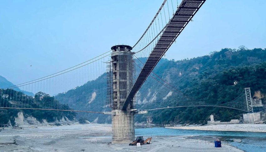 झोलुङ्गे पुलको शिलान्यास १५ मङ्सिर २०७१ मा तत्कालीन संविधानसभा सदस्य कांग्रेसका युवा नेता डा चन्द्र भण्डारीले गरेका थिए । तीन जिल्ला जोड्ने तीनमुखे पुलको परिकल्पना भने तत्कालीन मुख्यसचिव लिलामणि पौडेलले गरेका हन् । पुल एसिया महादेशको पहिलो तीनमुखे झोलुङ्गे पुल भएको कांग्रेस नेता डा भण्डारीले बताए । पुल मङ्सिर २०७१ बाट निर्माण सुरू भएको थियो ।