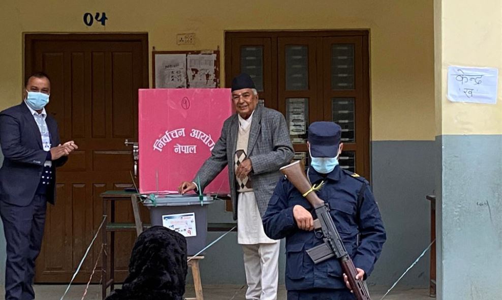 तनहुँ । नेपाली कांग्रेसका नेता रामचन्द्र पौडेलले मतदान गरेका छन् ।