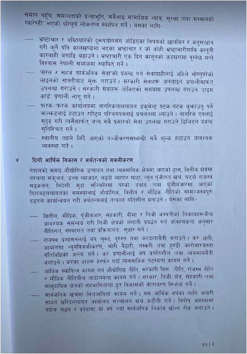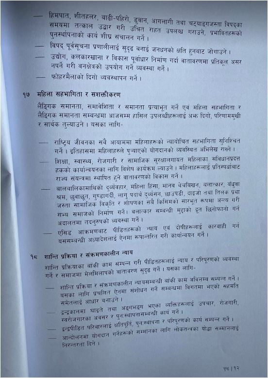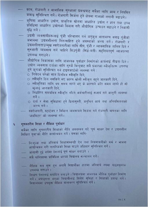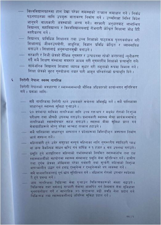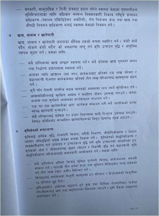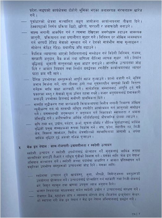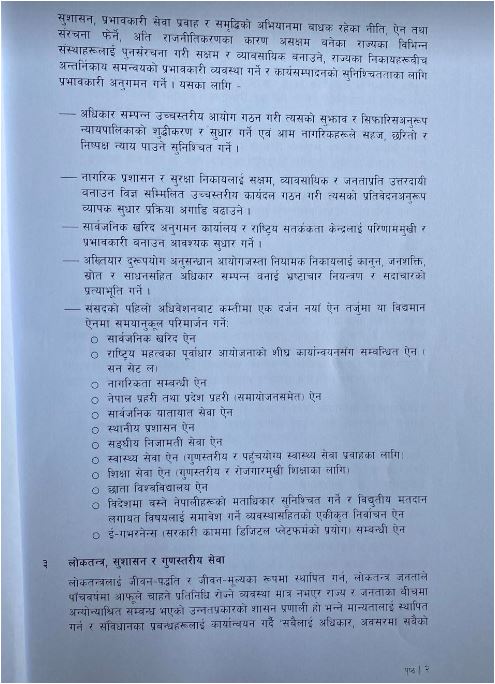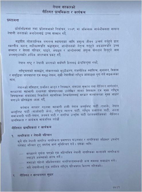 एमाले, माओवादी केन्द्र, राष्ट्रिय स्वतन्त्र पार्टी, राष्ट्रिय प्रजातन्त्र पार्टी, जनता समाजवादी पार्टी नेपाल, जनमत पार्टी र नागरिक उन्मुक्ति पार्टीले १८ बुँदे नीतिगत प्राथमिकता तथा कार्यक्रम सार्वजनिक सार्वजनिक गरेको हो।