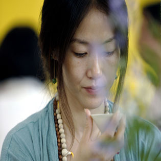 चीनको सान्छी प्रान्तमा आयोजना गरिएको चिया समारोहमा चिया चाख्दै एक महिला । तस्बिरः सिन्ह्वा \"tea