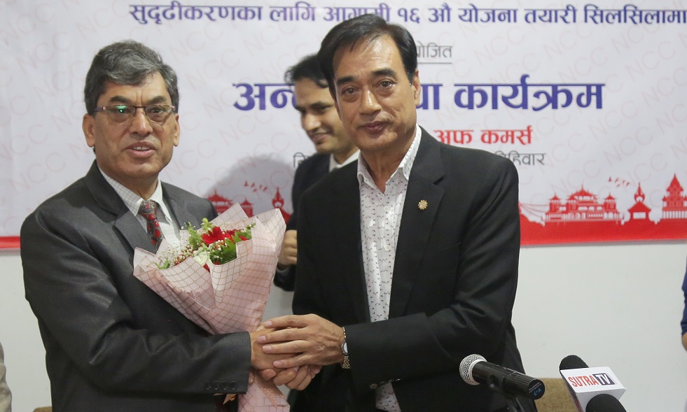 सोह्रौँ योजनाको अवधारणा एवं अतिकम विकसित मुलुकहरुको सूचिबाट स्तरोन्नतीपछि उत्पन्न परिस्थितीबारे चेम्बरले राष्ट्रिय योजना आयोगका उपाध्यक्ष डा. मिन बहादुर श्रेष्ठ सहित निजी क्षेत्रका सरोकारवालसंग चेम्बर भवनमा आजवृहत छफल गरेको हो ।